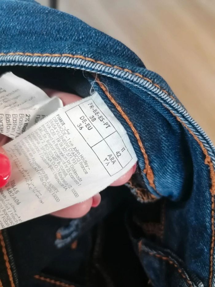 Bonjour, je vends ce jean bleu de la marque Pimkie taille 38 en très bon état. Lavé maison non fumeur.