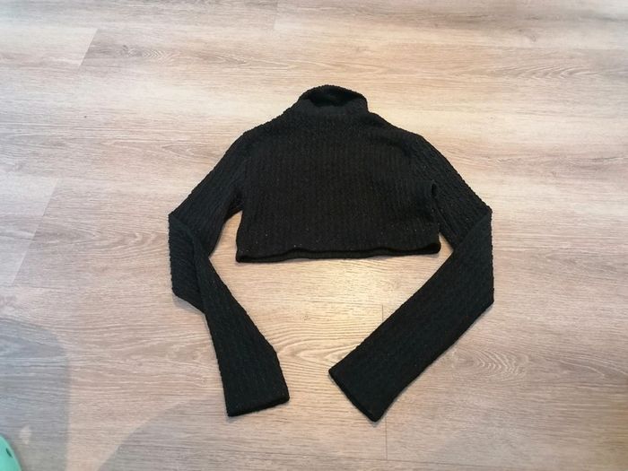 Bonjour, je vends ce crop top noir à col roulé de la marque Bershka taille S en bon état. Lavé maison non fumeur.