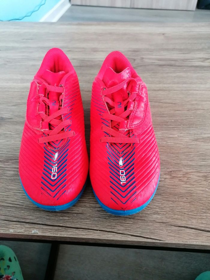 Bonjour, je vends cette paire de crampons rouge de la marque Kipsta taille 33 en bon état.