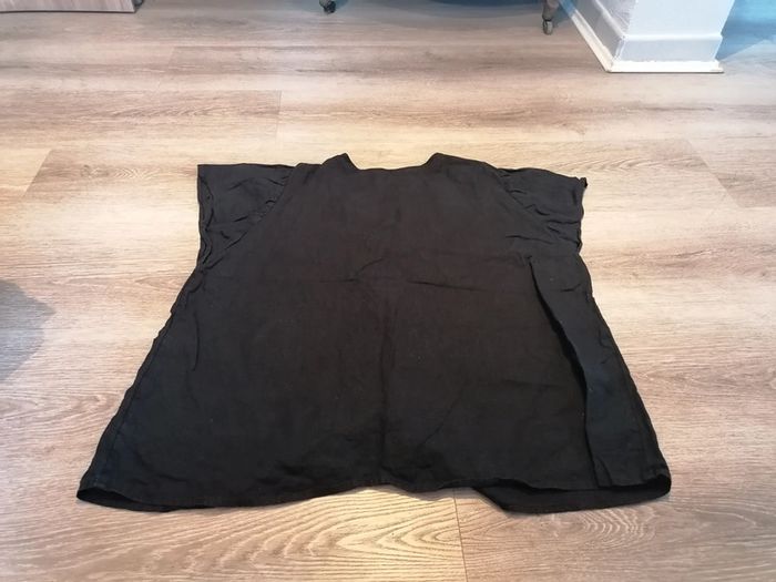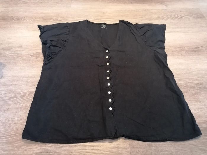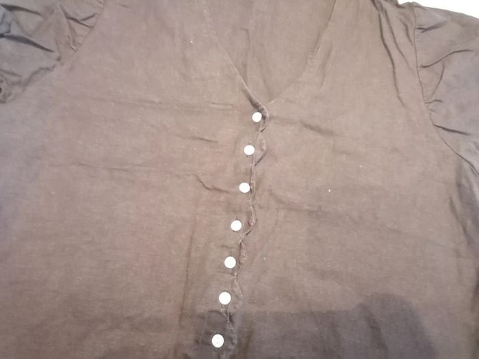 Bonjour, je vends ce chemisier noir à manches courtes en Lin de la marque Kiabi taille XL en très bon état. Lavé maison non fumeur.