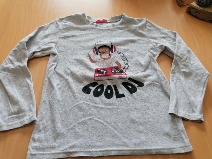 Bonjour, je vends ce haut de pyjama gris de la marque Tissaia taille 12ans avec motifs en très bon état. Lavé maison non fumeur.