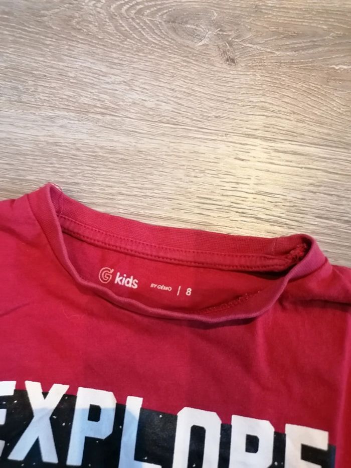 Bonjour, je vends ce tee shirt rouge de la marque Gémo taille 8ans en très bon état. Lavé maison non fumeur.