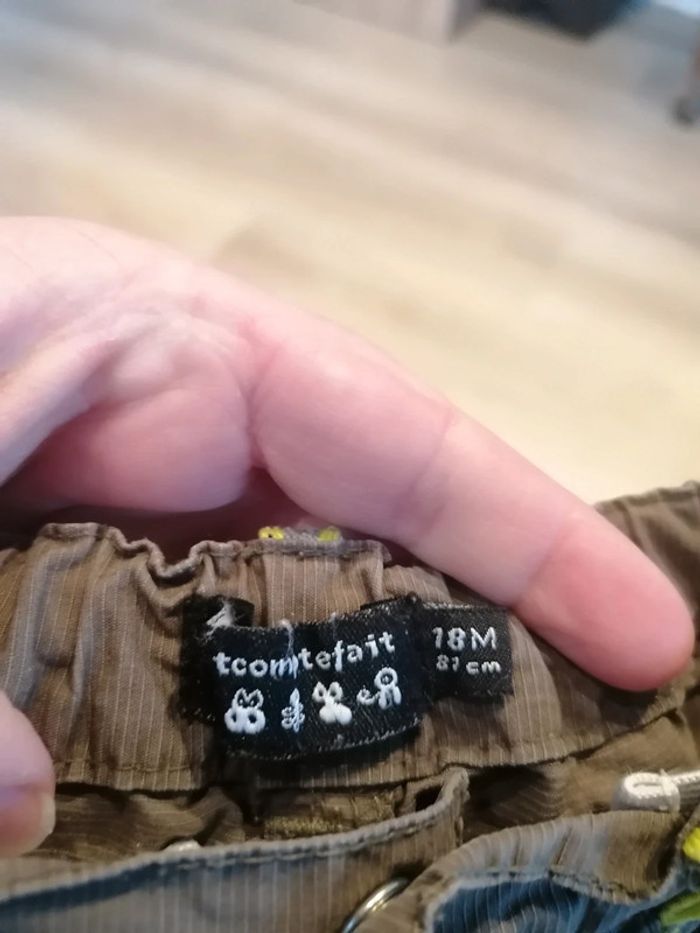 Bonjour, je vends ce pantalon kaki de la marque Tout compte fait taille 18mois en très bon état. Lavé maison non fumeur.