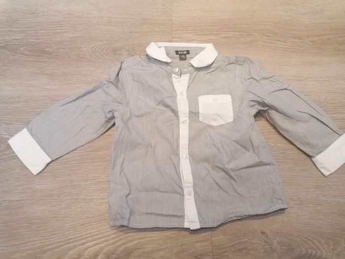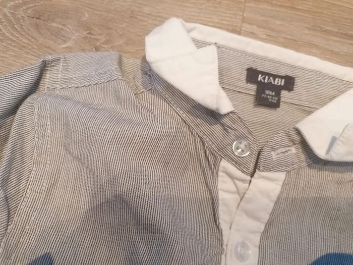 Bonjour, je vends cette chemise à manches longues rayée noire et blanche de la marque Kiabi taille 18mois en très bon état. Lavé maison non fumeur.