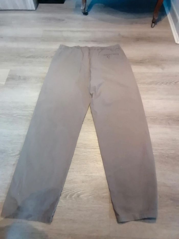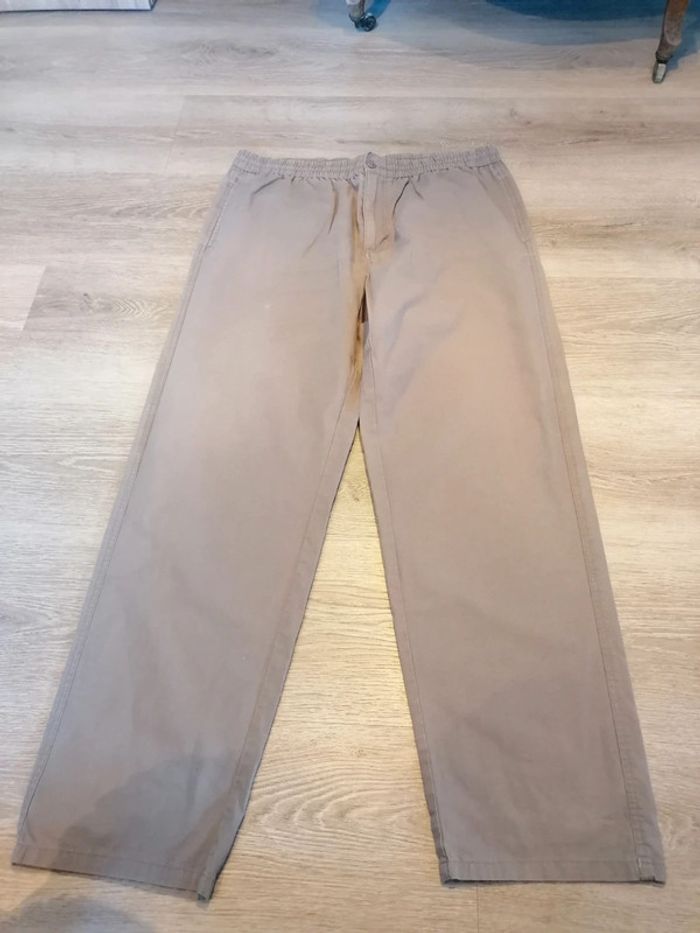 Bonjour, je vends ce pantalon kaki clair de la marque La redoute taille 46/48 en bon état (une petite tâche sur le devant). Lavé maison non fumeur.