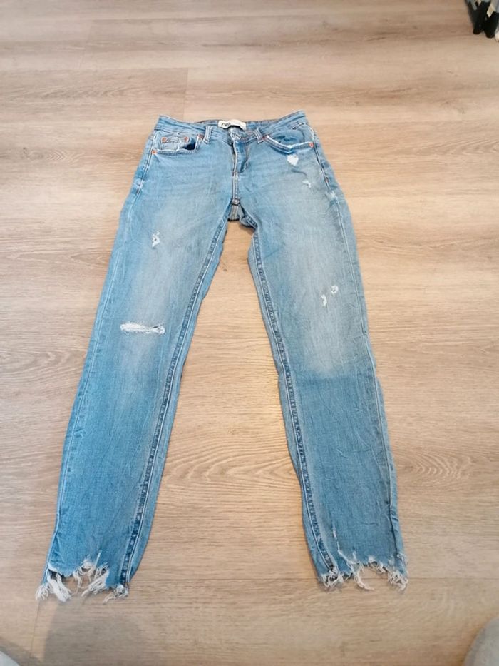 Bonjour, je vends ce jean Zara skinny bleu en très bon état. N'est pas taille basse. Taille 36. Lavé maison non fumeur.