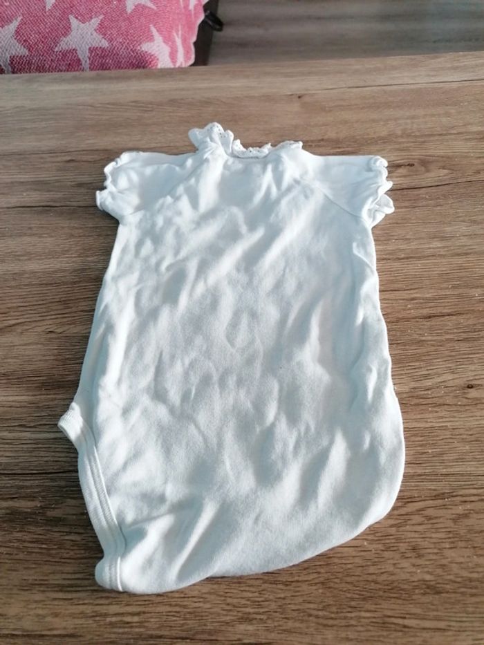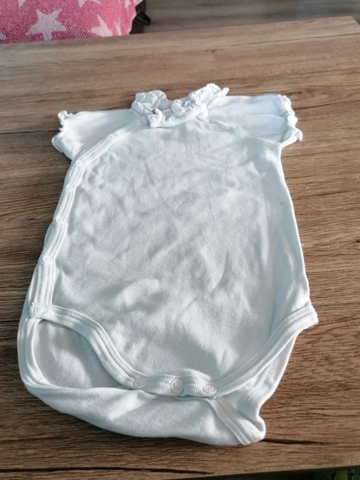 Bonjour, je vends ce body blanc à manches courtes de la marque petit bateau taille 12mois en très bon état. Lavé maison non fumeur.