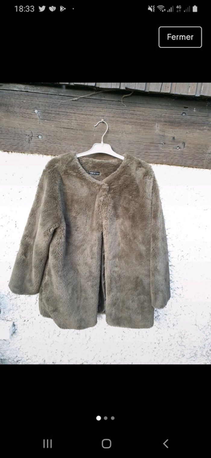 Bonjour Magnifiqe veste chaude douillette et légère KAKI marque made in italy arrive mi cuisses Fausse fourrure, excellent état Se ferme par un gros pression en haut Convient tailles 38 40 #tchoune13femme38 Effet oversize si desiré