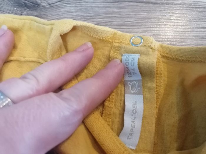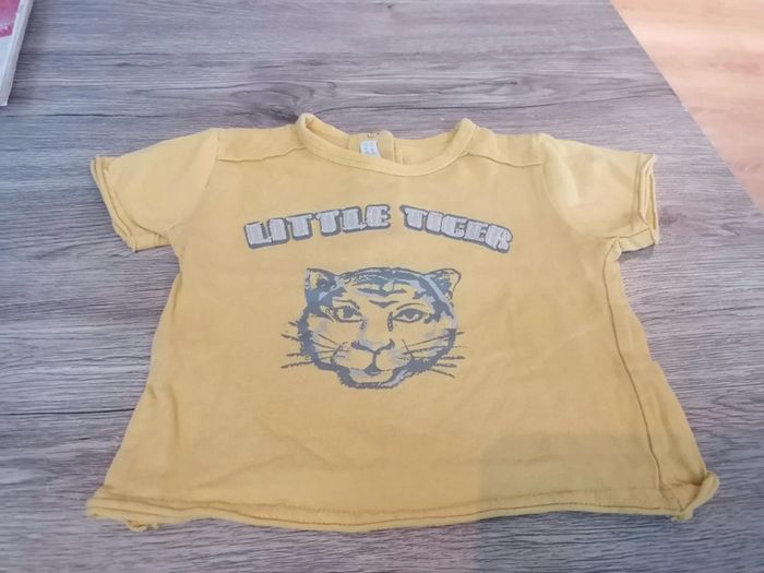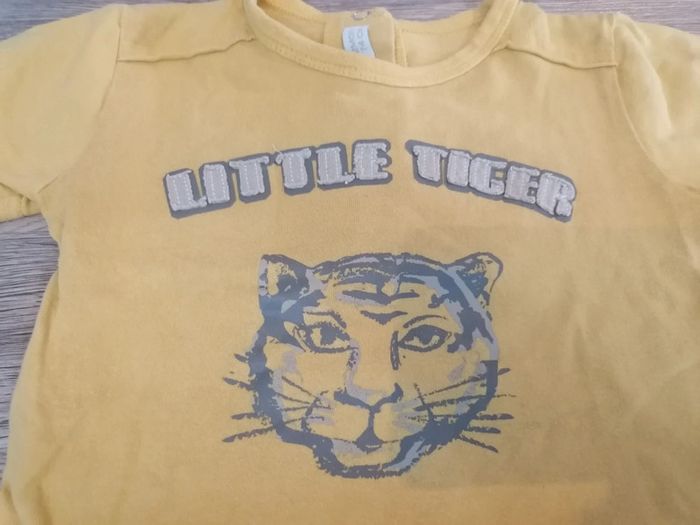 Bonjour, je vends ce tee shirt à manches courtes jaune motif tigre de la marque Tape à l'œil taille 12mois en très bon état. Lavé maison non fumeur.