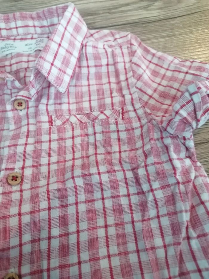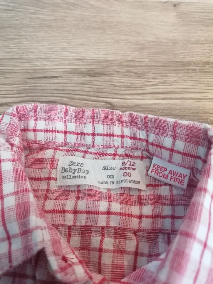 Bonjour, je vends cette chemise à manches courtes à carreaux blanche et rouge de la marque Zara babyboy taille 9/12mois en très bon état. Lavé maison non fumeur.