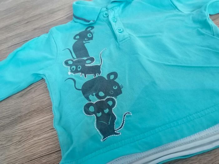 Bonjour, je vends ce polo turquoise à manches longues de la marque tout compte fait taille 12mois en très bon état. Lavé maison non fumeur.