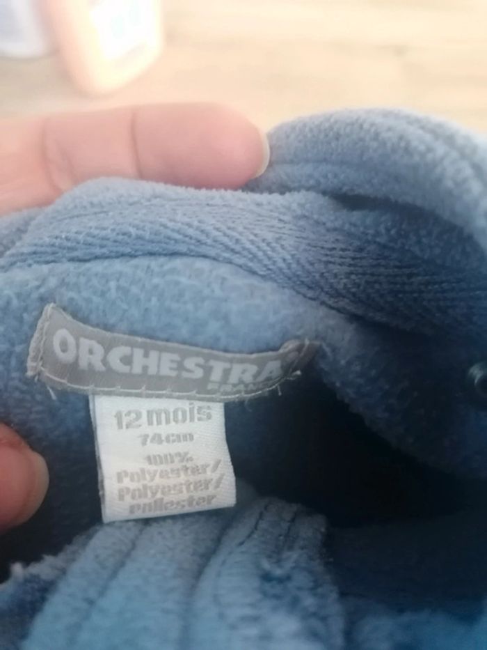 Bonjour, je vends cette polaire bleue de la marque Orchestra taille 12mois en très bon état. Lavé maison non fumeur.