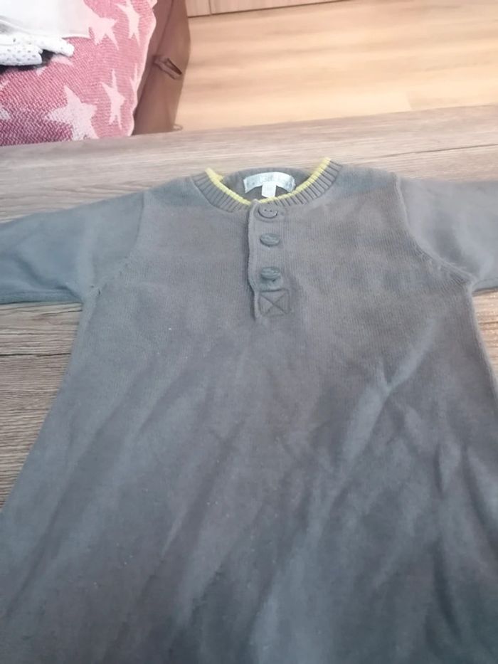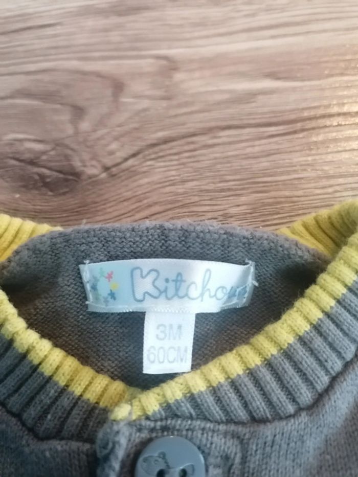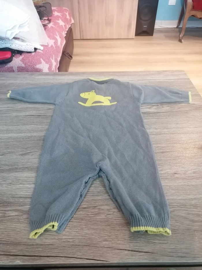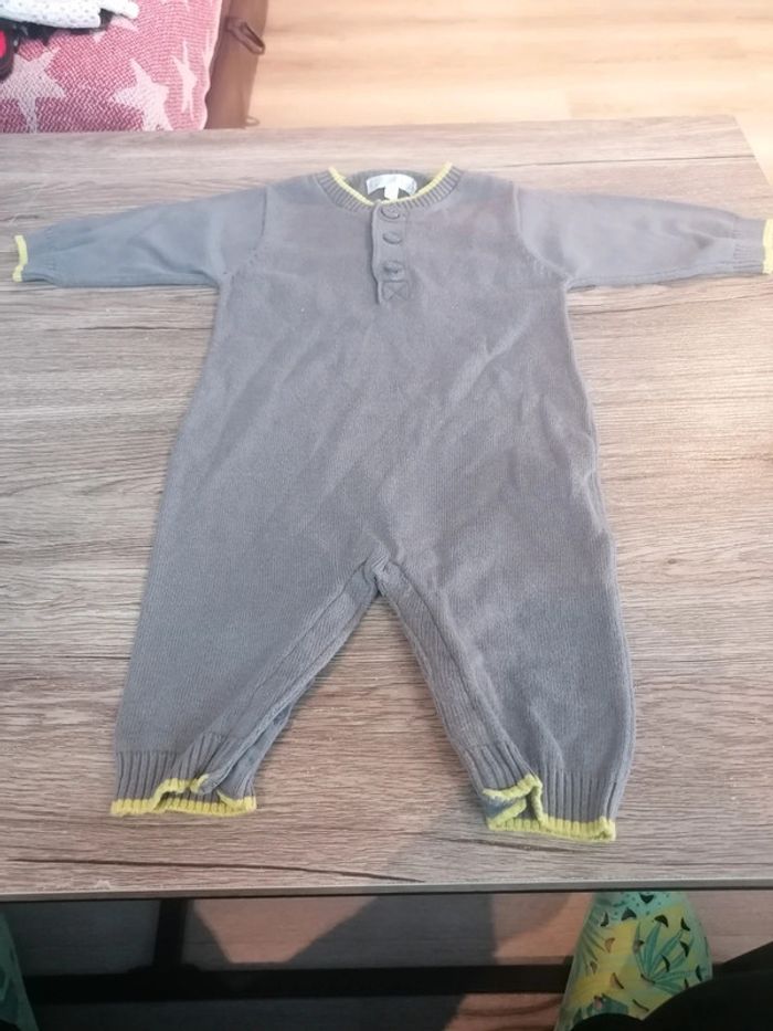Bonjour, je vends cette combinaison grise et vert anis de la marque Kitchoun taille 3mois en bon état. Lavé maison non fumeur.