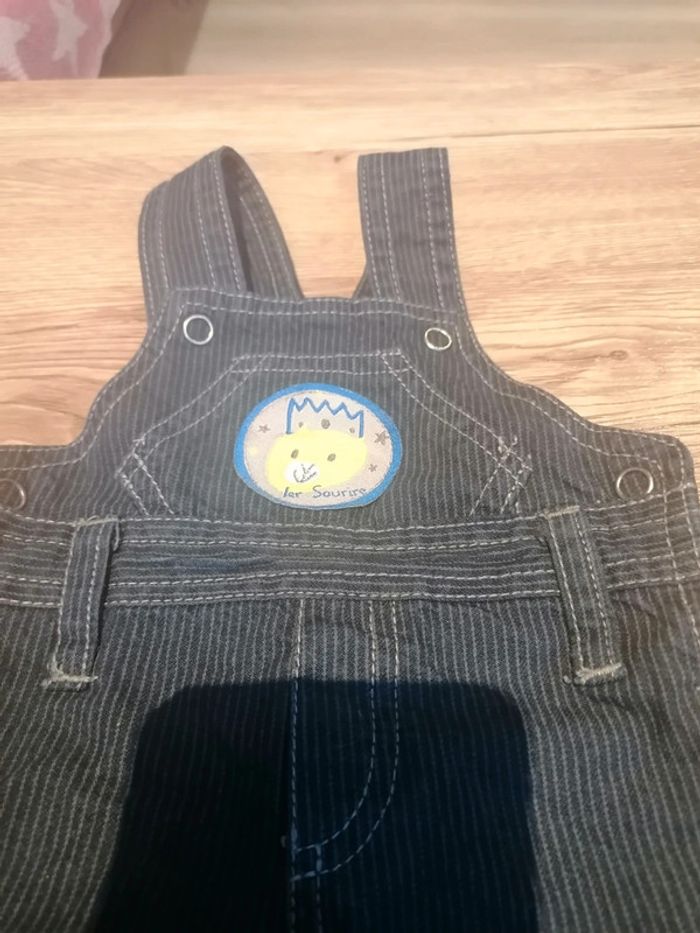 Bonjour, je vends cette salopette rayée grise de la marque 3 pommes taille 1mois en très bon état. Lavé maison non fumeur.