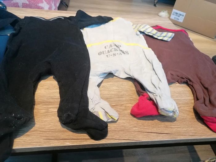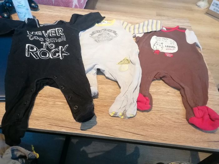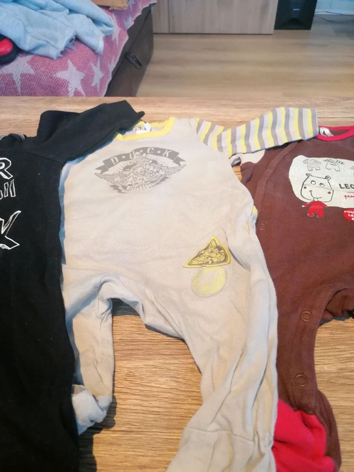 Bonjour, je vends ce lot de 3 pyjamas en coton taille 3mois en bon état. Marques H&M, Disney et Orchestra. Quelques peluches mais ne gêne en rien l'utilisation. Lavé maison non fumeur.
