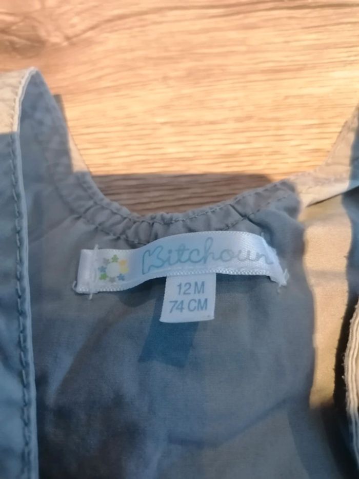 Bonjour, je vends cette salopette grise de la marque Kitchoun taille 12mois en très bon état. Lavé maison non fumeur.