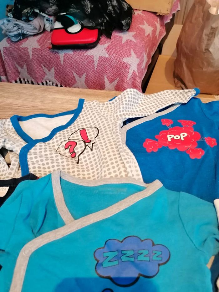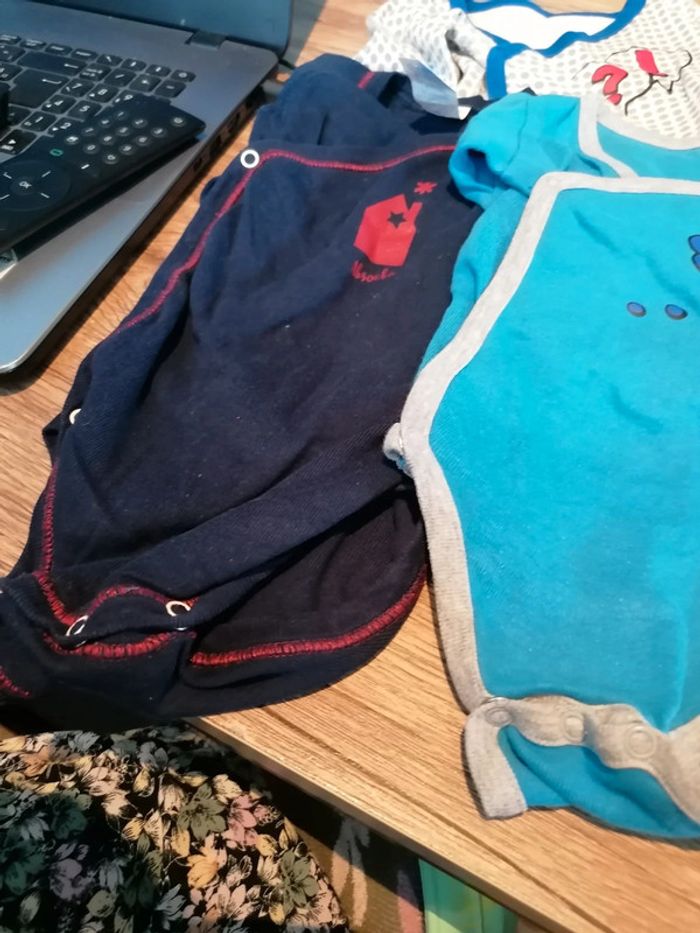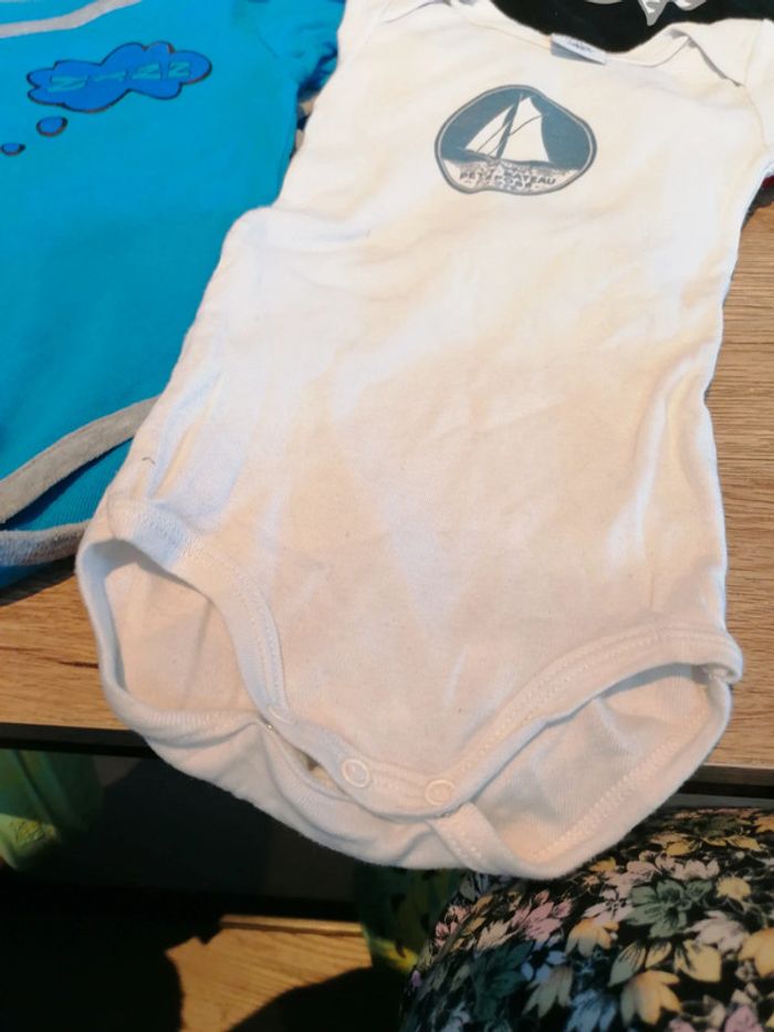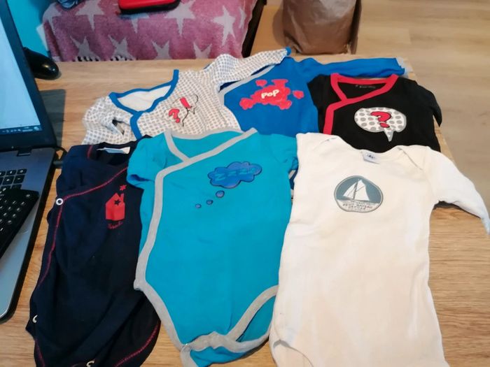 Bonjour, je vends ce lot de 6 bodies en très bon état. 4 Orchestra, 1 absorba et 1 petit bateau. Taille 6mois. Lavé maison non fumeur.