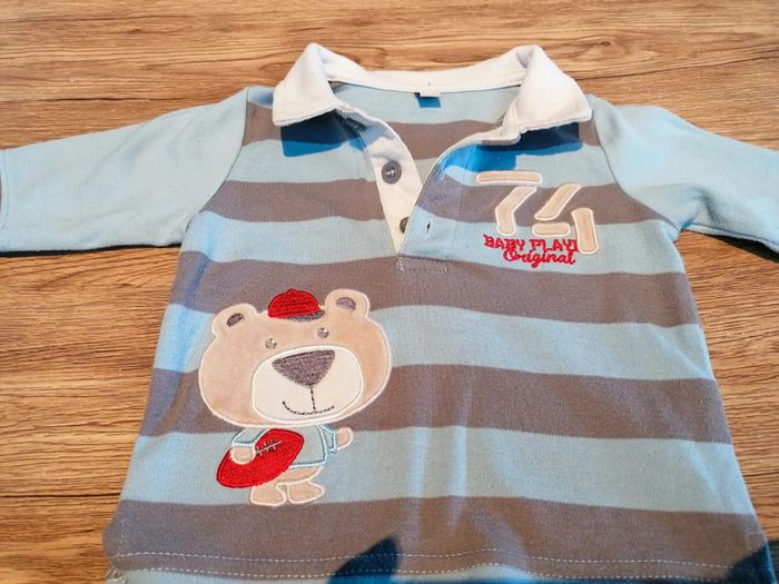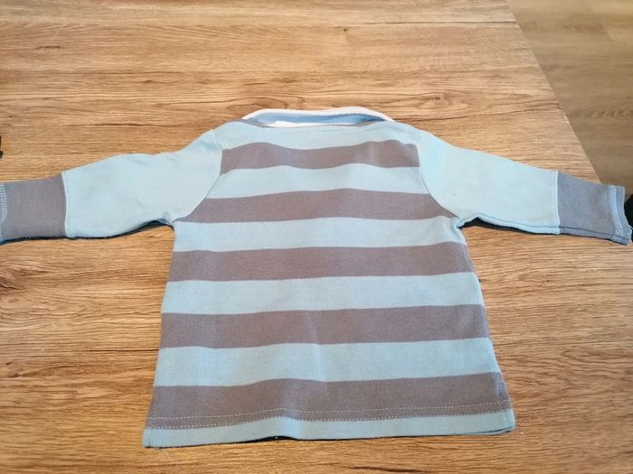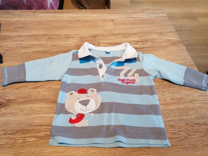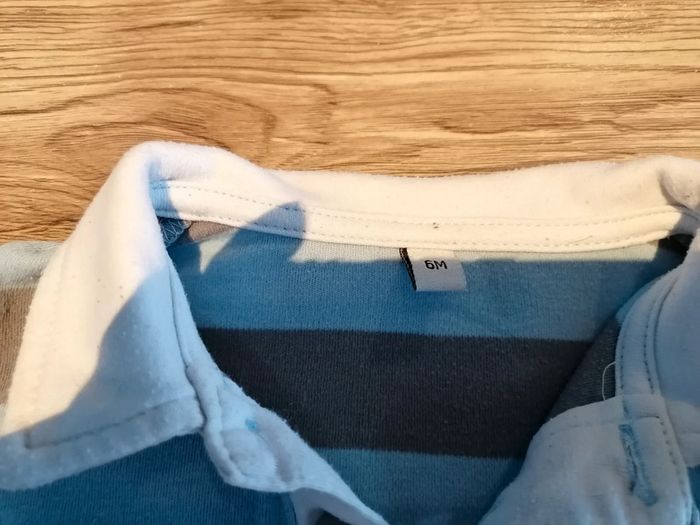Bonjour, je vends ce polo à manches longues rayé bleu et beige taille 6moisen très bon état. Lavé maison non fumeur.