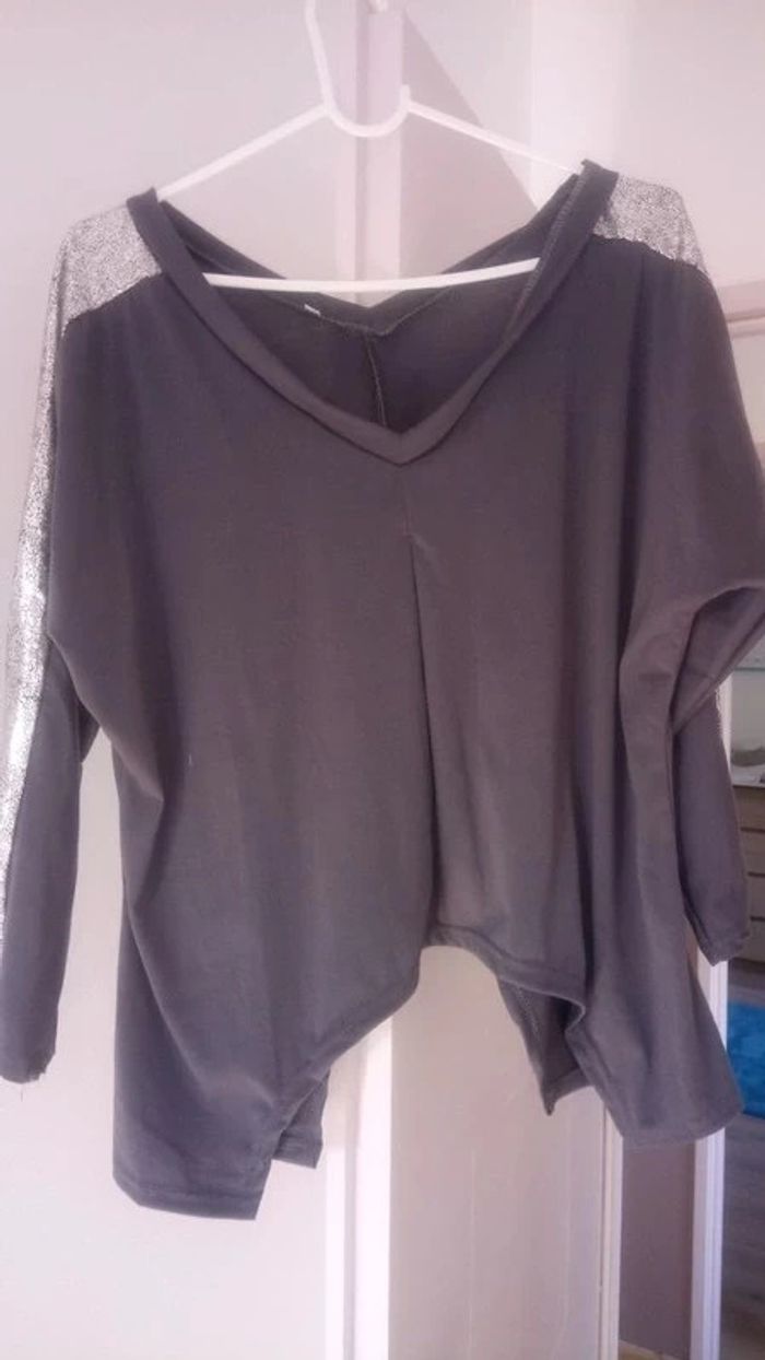 Haut manche longue bas asymétrique bande argenté sur les bras #tchoune13femme38