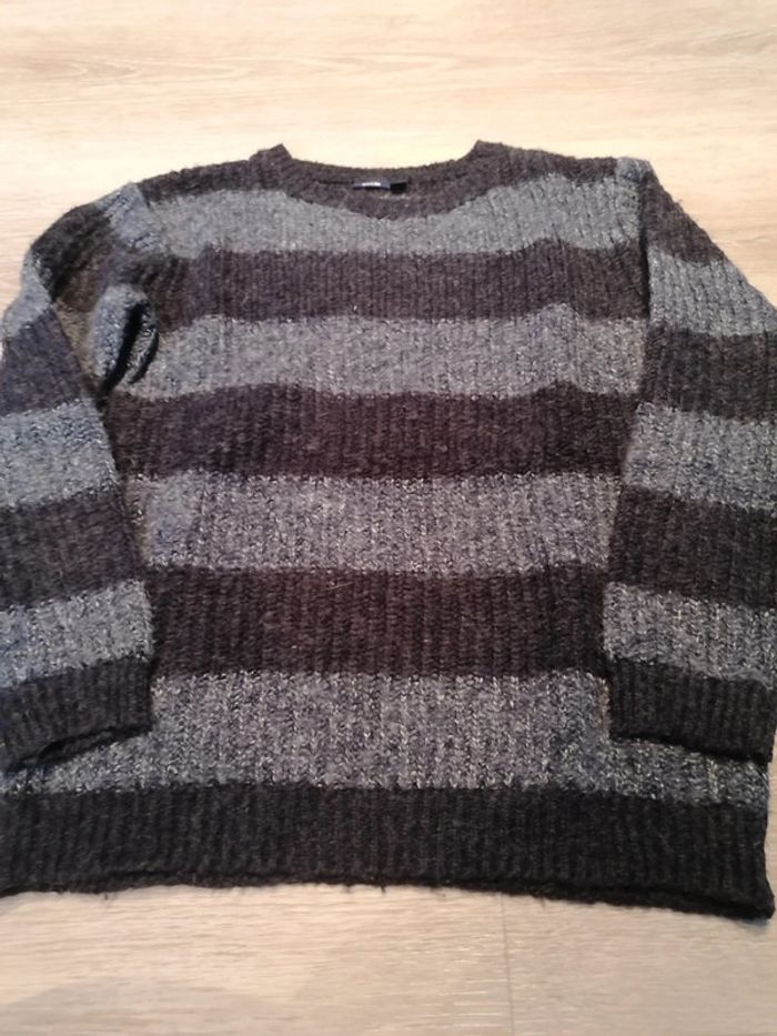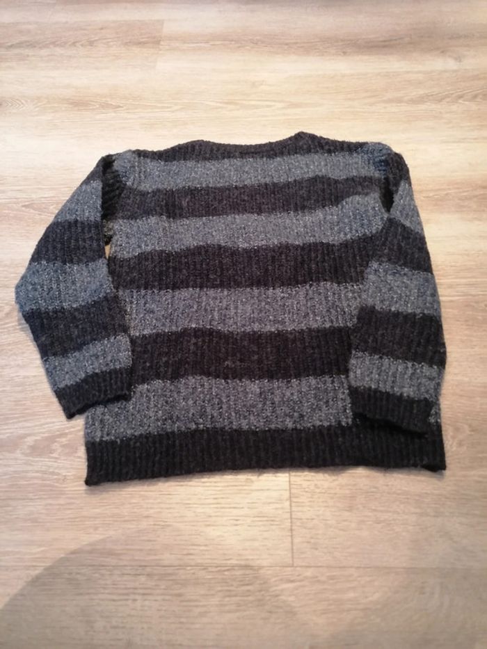 Bonjour, je vends ce pull rayé gris de la marque Kiabi taille 12ans en très bon état. Lavé maison non fumeur.