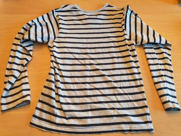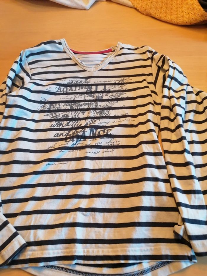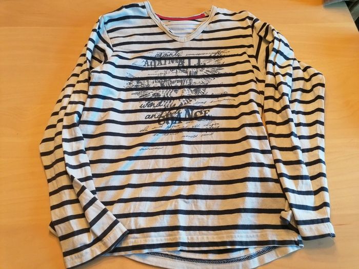 Bonjour, je vends ce tee shirt à manches longues rayé noir et blanc de la marque YCC 214 taille 12ans en très bon état. Lavé maison non fumeur.