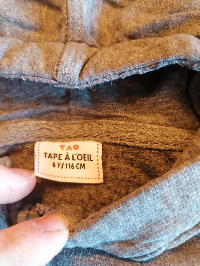 Bonjour, je vends ce gilet gris à capuches de la marque Tape à l'œil taille 6ans. Très bon état. Lavé maison non fumeur.