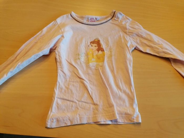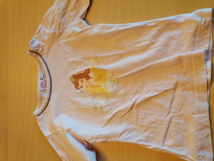 Bonjour, je vends ce tee shirt blanc motif princesse de la marque Disney taille 6ans en très bon état. Lavé maison non fumeur.