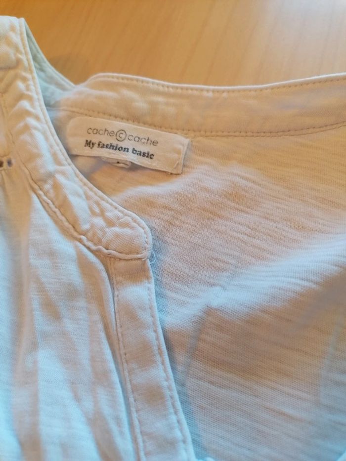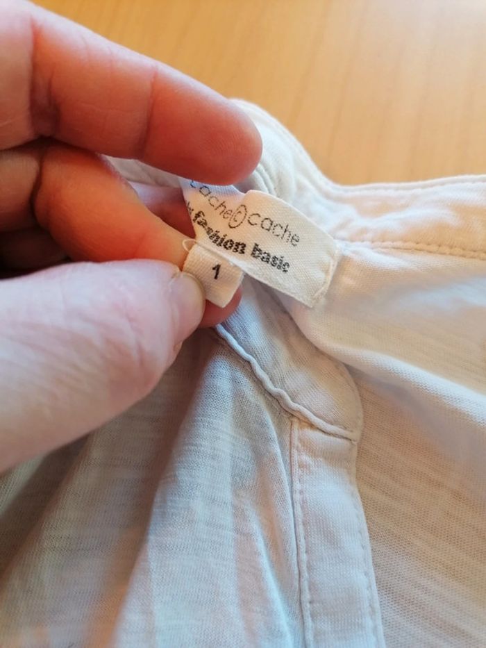 Bonjour, je vends ce tee shirt blanc à manches courtes de la marque cache cache. Taille 1. Très bon état. Lavé maison non fumeur.