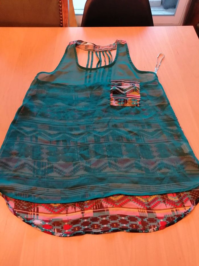 Bonjour, je vends ce débardeur transparents multicolore de la marque Atmosphere taille 36. Très bon état. Lavé maison non fumeur.