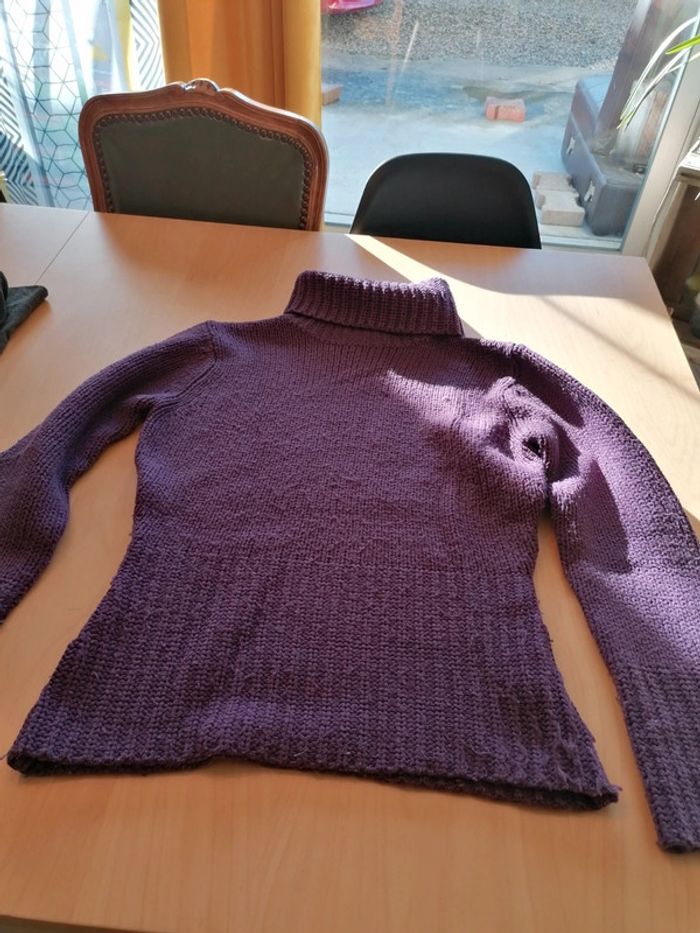 Bonjour, je vends ce pull à col roulé violet de la marque les 3 Suisses. Taille 34/36. Très bon état. Lavé maison non fumeur.