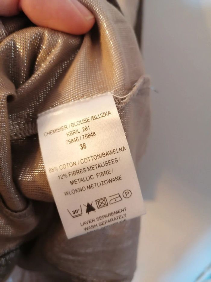 Bonjour, je vends cette chemise beige brillante de la marque Jacqueline riu. Taille 38. Très bon état. Lavé maison non fumeur.