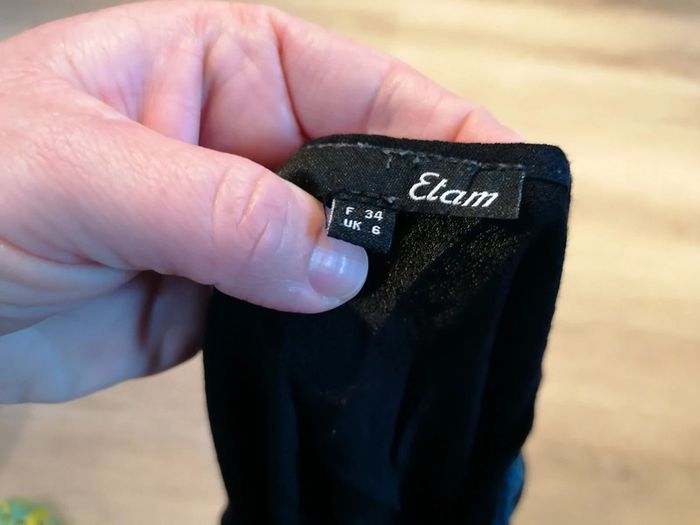 Bonjour, je vends ce tee shirt a manches longues noir de la marque Etam. Matière fluide. Taille 34. Très bon état.