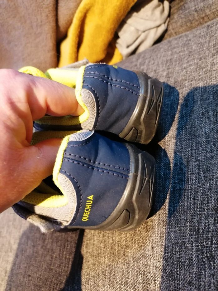 Bonjour, je vends cette paire de basket quechua grise et verte à scratchs. Bon état.