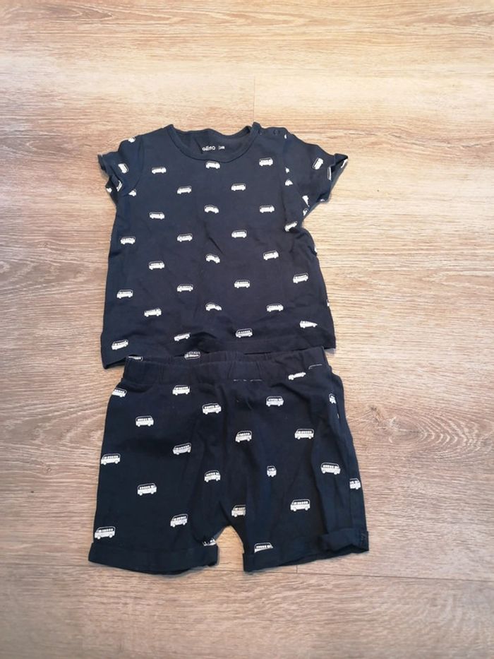 Bonjour, je vends cet ensemble de la marque Gémo. Bleu marine avec des bus blancs. Taille 24mois. Très bon état. Lavé maison non fumeur.