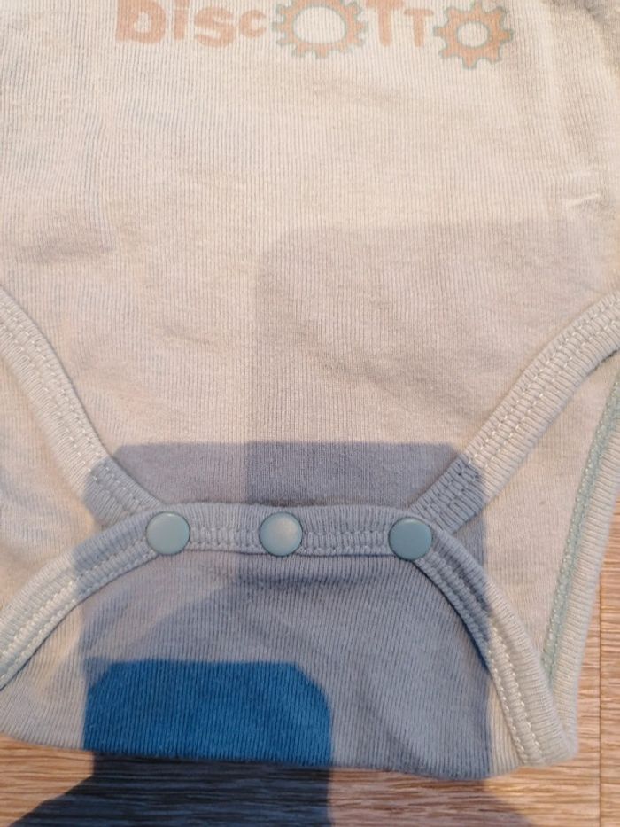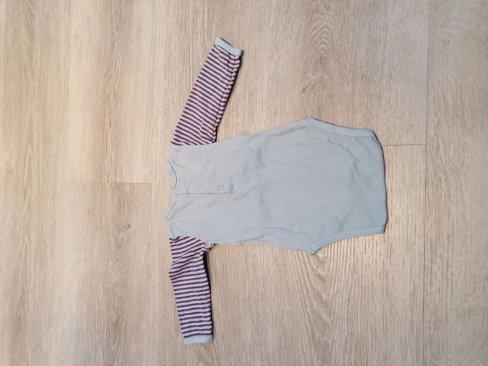 Bonjour, je vends ce body bleu/gris DPAM. Taille 3M. Pressions entre les jambes et dans le dos. Très bon état.