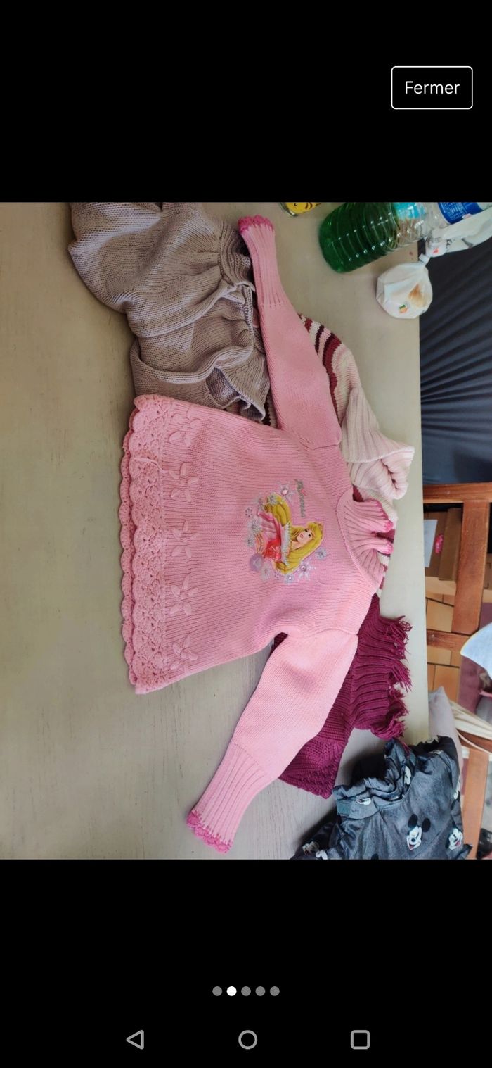 Lots de 3 pull avec un gilet sans manches. Marques inconnues sauf le Disney.le tout en bon état