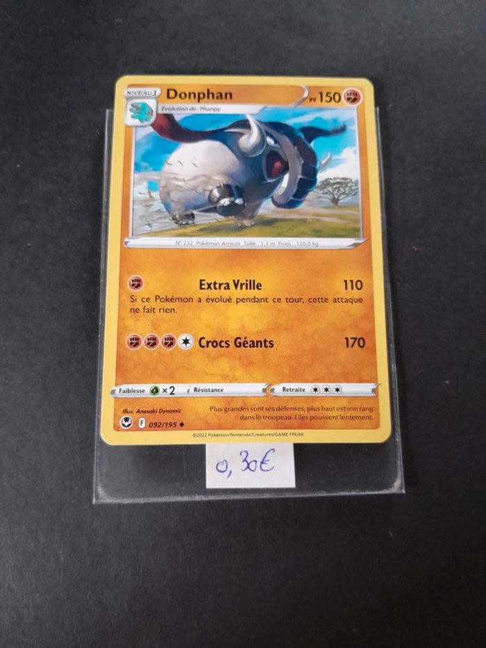 Carte Pokémon Donphan, Série Epée et Bouclier, Tempête Argentée. #PokemaniacTempêteArgentée Pour toute création d'un lot, me contacter.