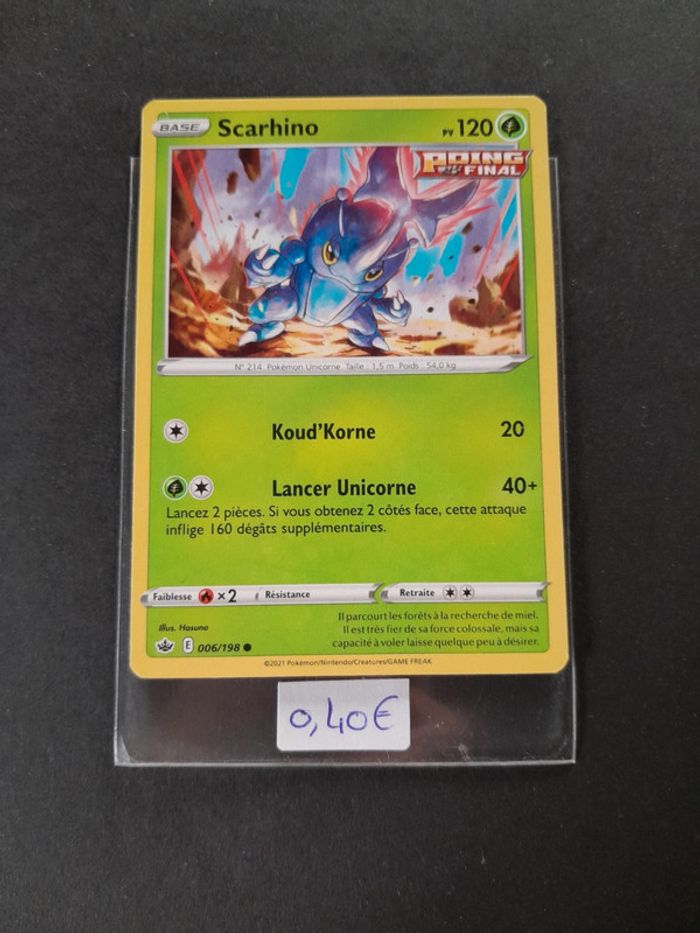 Carte Pokémon Scarhino, Série Epée et Bouclier, Règne de Glace. #PokemaniacRègnedeGlace Pour toute création d'un lot, me contacter.