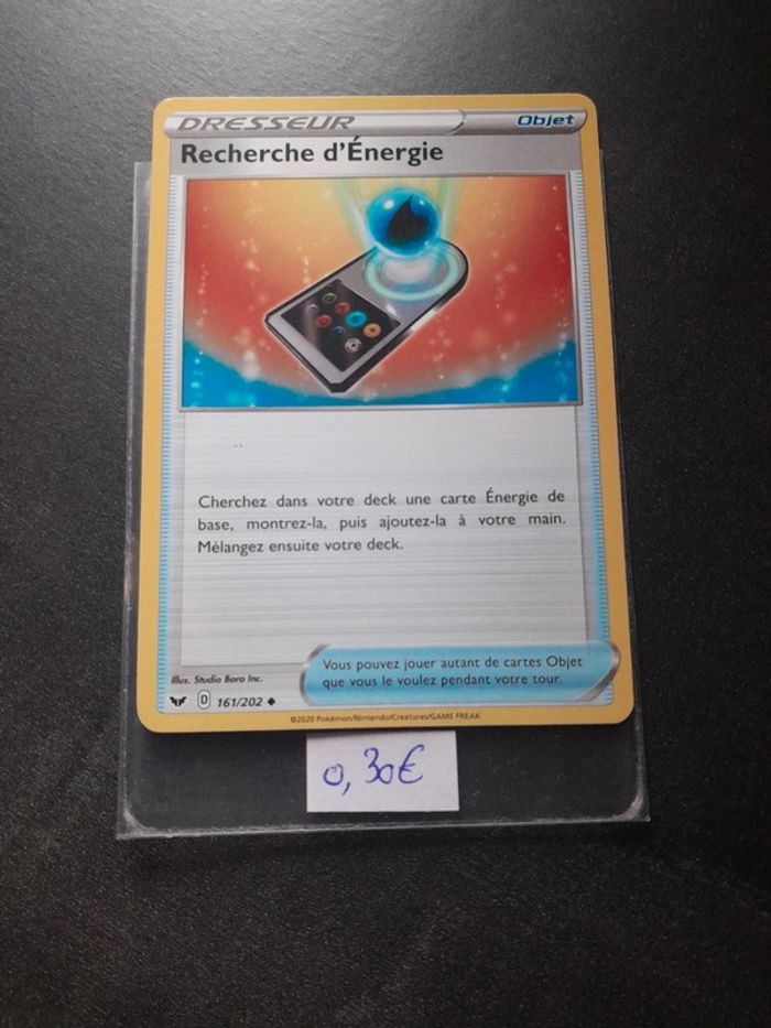 Carte Pokémon Recherche d'Energie, Série Épée et Bouclier. #Pokémaniacépéeetbouclier Pour toute création d'un lot, me contacter.
