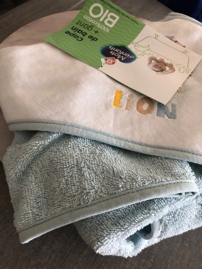 Cape de bain + gants mots d’enfants - photo numéro 1