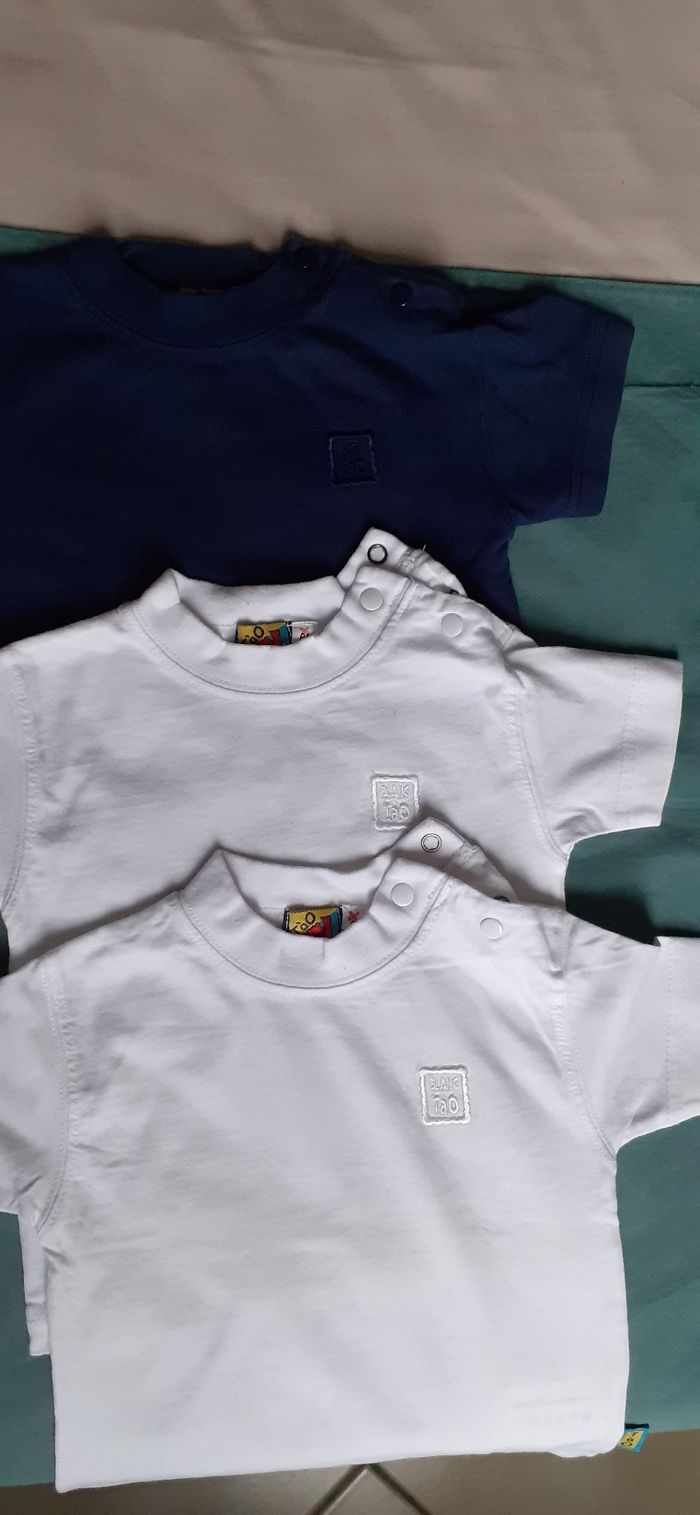 Vends un lot de 3 tee-shirts en coton 2 blancs et 1 bleu marine marque Tape à l Oeil 6 mois