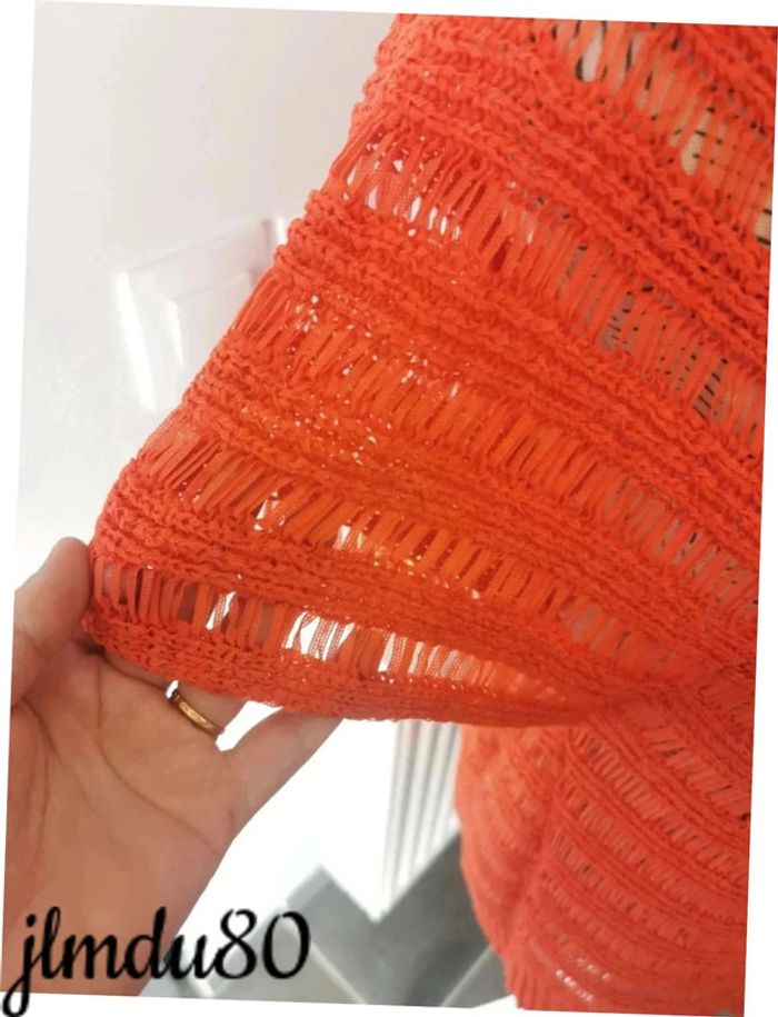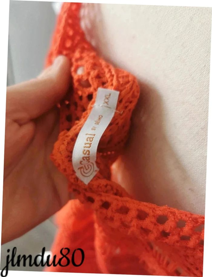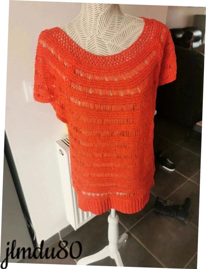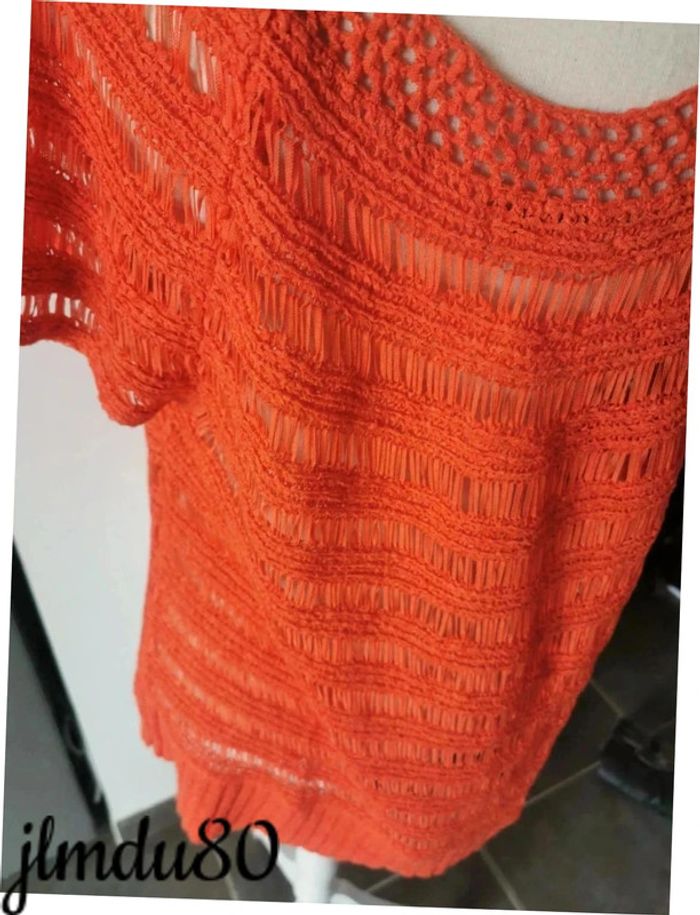 Jolie haut orange taille 44 Ajouré, donc à porter avec un débardeur ou sur la plage Effet brodé sur certaines parties Très bon état