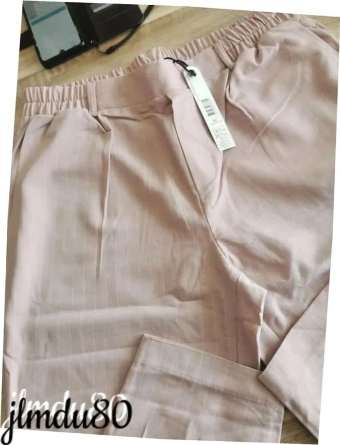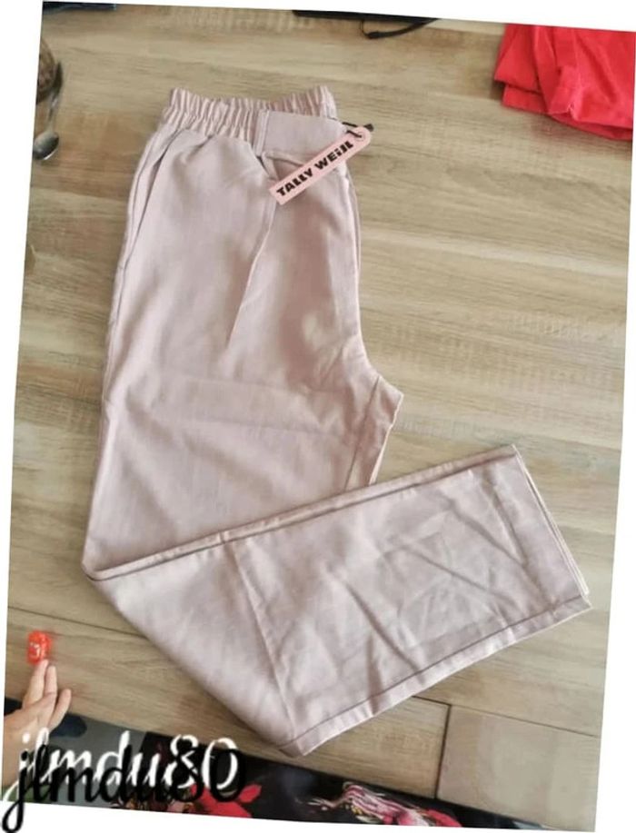 Jolie pantalon rayé Neuf Taille 40 vieux rose, marque tally weijl Elastique a la taille, possible de mettre une ceinture 2 poches devant et 2 fausses derrière Payé 19.99