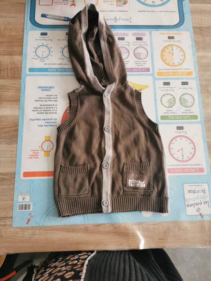 Magnifique gilet maille sans manches taille 3 ans Capuche et poches Se ferme par boutons Très bon état #3anstim
