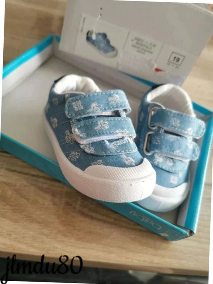 Magnifique petite chaussure basket garçon avec scratchs et semelle dure , elles sont neuves mon fils a le pied trop gros Neuf dans la boîte d'origine #chaussurebebepopo