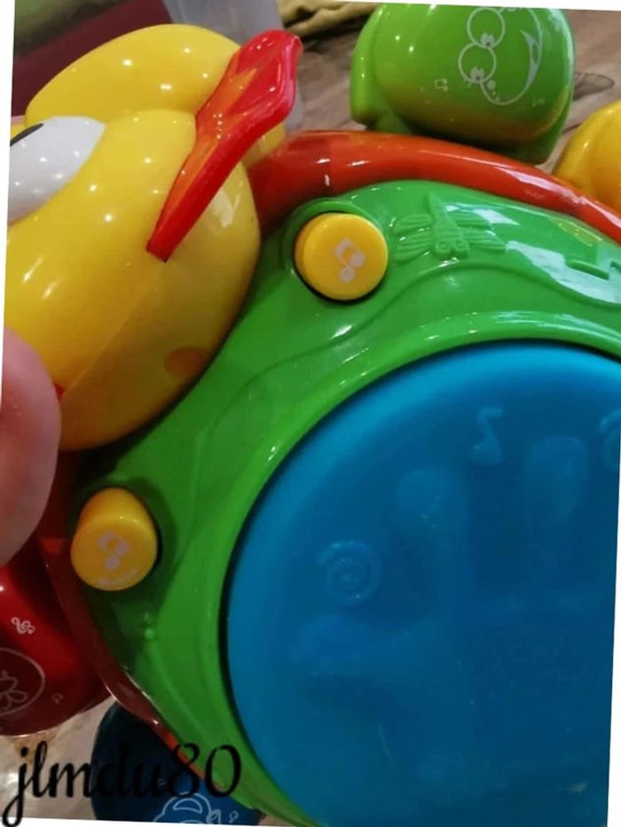 Coccinelle interactive Son et lumière Elle fait le bruit des insecte qu'il y'a en dessins sur les pattes : Oiseau elephant, singe, poussin, abeille et grenouille En très bon état, il y a juste le dessus ou il y'a la main qui est rayé #jouetpopo