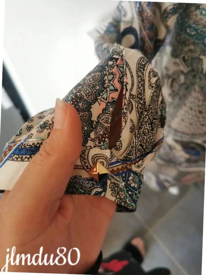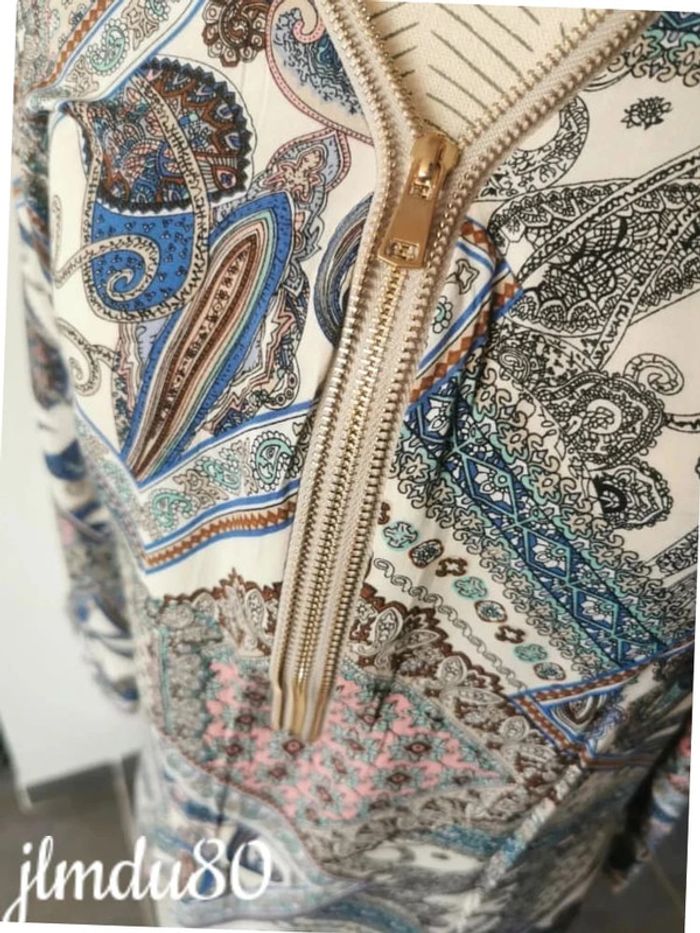 Jolie robe coloré et a motif taille S (va aussi à un M) Boutons au niveau des manches, fermeture au niveau du décolté Très bon état