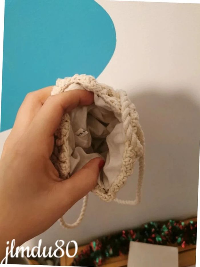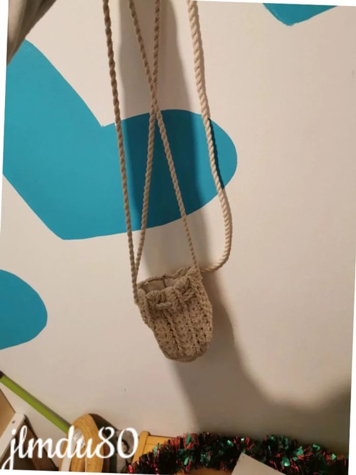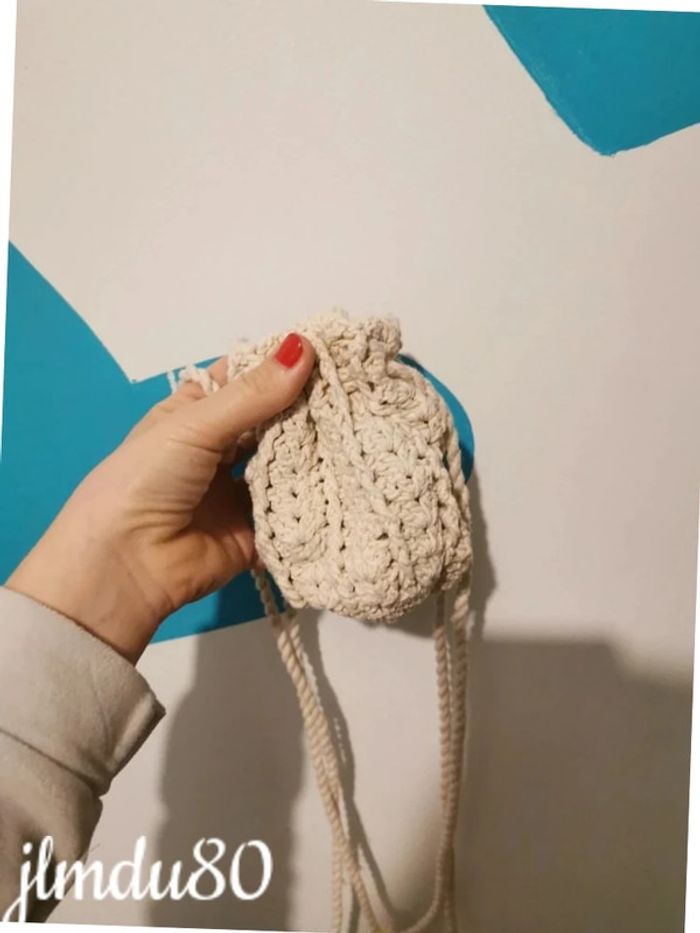 Petite bourse en crochet 2 ances qui se ressers, se porte à l'épaule ou dans le main Très bon état général