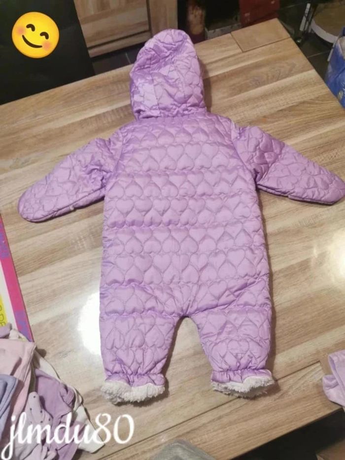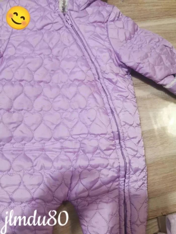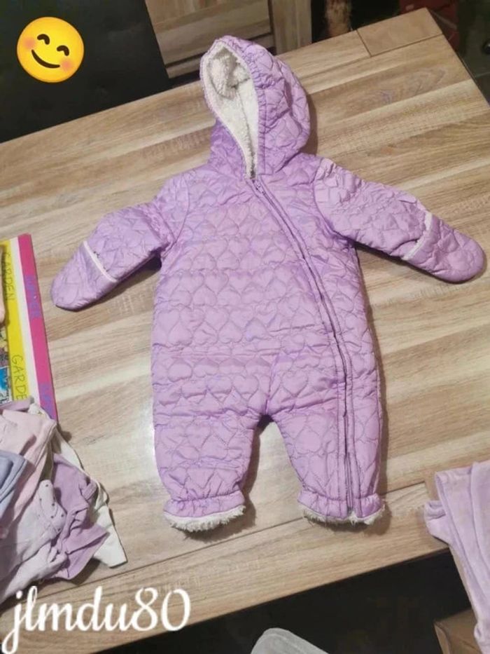 Combinaison pilote taille 6 mois Hyper chaude, polaire à l'intérieur Mouffle intégré et capuche Ouverture par une fermeture éclair devant Couleur mauve très bon état