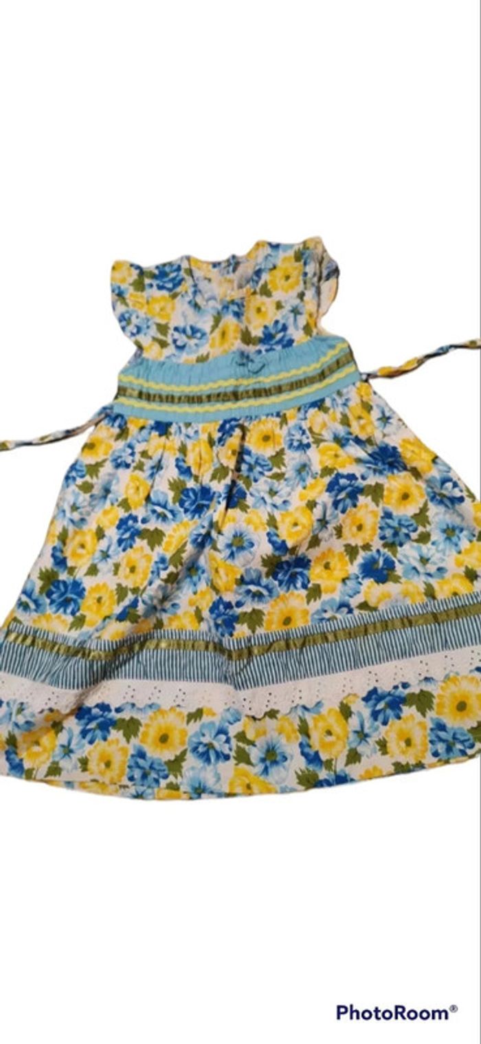 Jolie robe d'été vintage fleurit Très bon état Ficelle à nouer derrière Petits boutons en forme de fleurs pour la fermer 100 % coton #4anslina #5ansfillelina